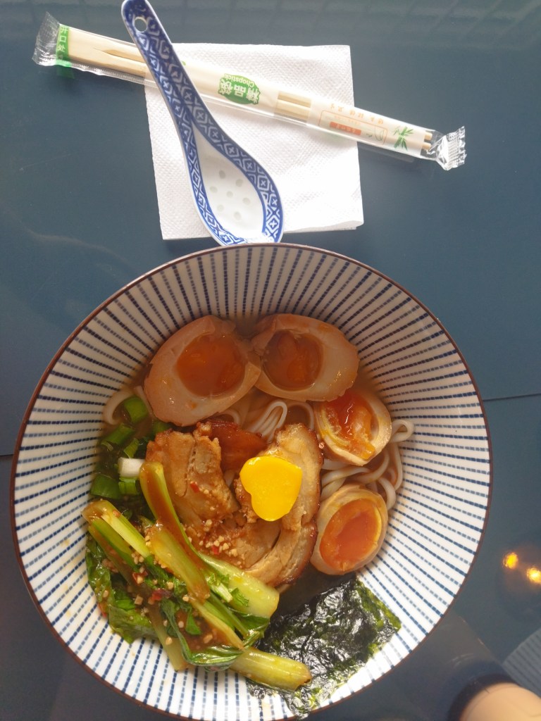 While bubble tea isn’t my personal favourite, my fiancé, Jeremy, tried their signature Tapioca bubble tea, and was thoroughly impressed. As for our ramen choices, we both opted for the pork ramen, ensuring to add an ajitama, a ramen boiled egg, as we adore a perfectly boiled egg accompanying our ramen.