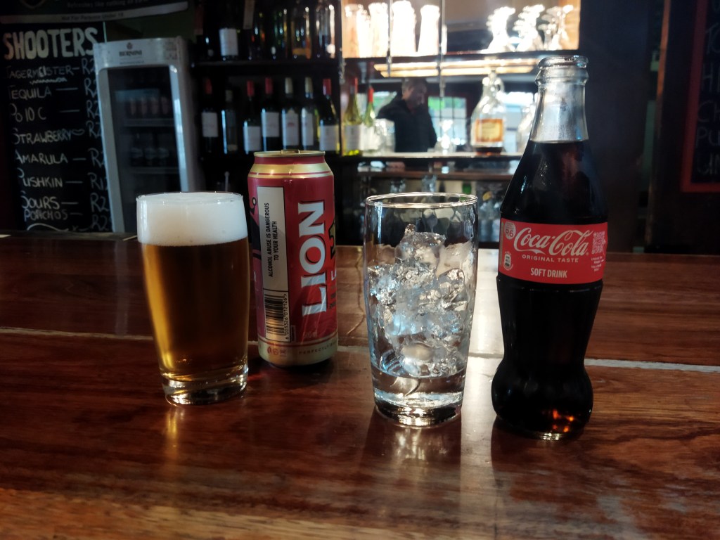 Venturing into town later on, we popped into the Underberg Inn and Pub, proudly claiming the title of the highest and most affordable pub in Underberg. The allure of its daily changing meal specials was super enticing, though we opted for a more casual visit this time. Jeremy enjoyed a crisp beer, while I sipped on a refreshing vodka coke served in a cool glass bottle, adding a touch of nostalgia to our afternoon.