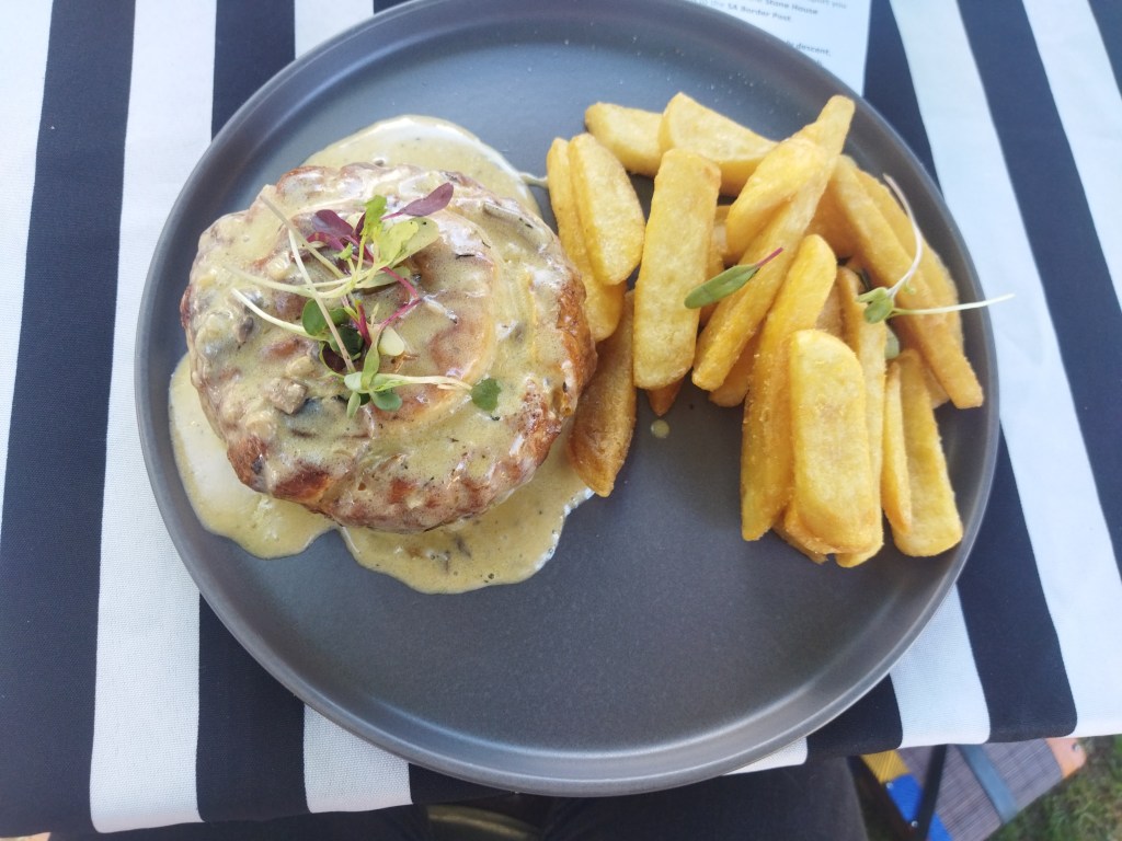 The following day beckoned with the promise of new flavours and historical marvels as we ventured to Stone House Kitchen in Himeville, about 6kms outside of Underberg. Welcomed by the warm smiles of two friendly ladies, we felt an immediate sense of hospitality. Their recommendation of the “to-die-for” baked cheesecake intrigued us, though our appetites first led us to other tantalizing dishes. Jeremy had a pulled pork burger, bursting with savoury goodness, while I indulged in a delectable chicken and mushroom pie bathed in a flavourful sauce. The promise of the cheesecake lingered but we were too stuffed to consider it. Not to worry, another reason for a return visit, along with the anticipation of their homemade atcha that, unfortunately, wasn’t available at the time.